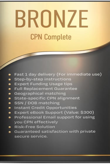This isn’t just a CPN—it’s your gateway to a stronger credit profile. When you invest in our $79.99 BRONZE CPN Package, you receive a comprehensive and high-value service designed to help you move forward with confidence, speed, and support.
