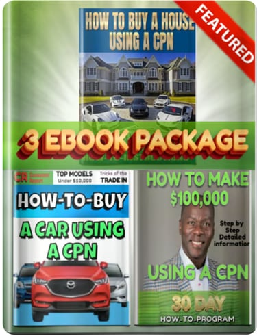 Are you ready to take control of your credit, finances, and future? With our 3-in-1 CPN eBook System, you'll gain insider knowledge that empowers you to buy a house, buy a car, and make $100,000 using a validated Legal CPN. These are the secrets that banks, credit experts, and financiers don’t want you to know!